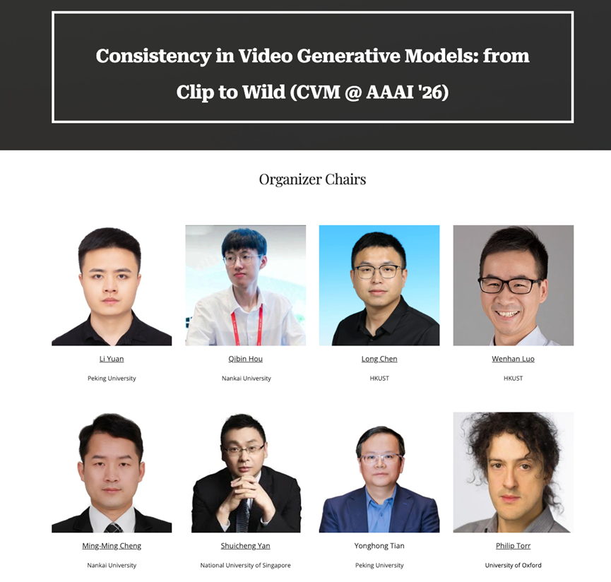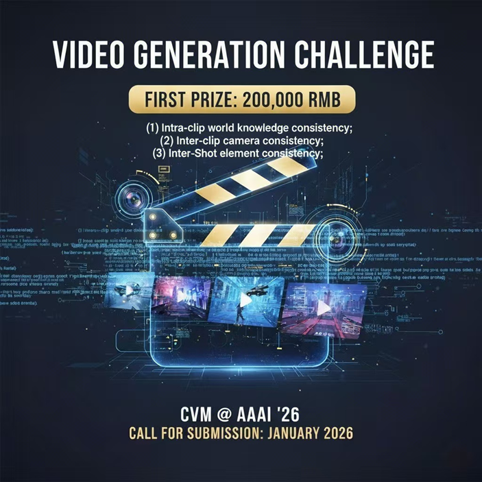 为推动解决这一关键瓶颈,人工智能会议 AAAI 2026 期间将举办一场专注于此的研讨会——“从片段到原生:视频生成模型中的一致性(CVM)”。由北京大学袁粒Li Yuan、田永鸿,联合牛津大学Philip Torr、新加坡国立大学颜水成、南开大学程明明、侯淇彬、港科大Long Chen、Wenhan Luo等共同举办的视频生成一致性挑战赛现已正式开启,一等奖奖金20万。旨在建立一个权威的、标准化的评测平台,汇聚全球顶尖的学术与产业力量,共同探索并定义下一代视频生成技术的行业基准。
