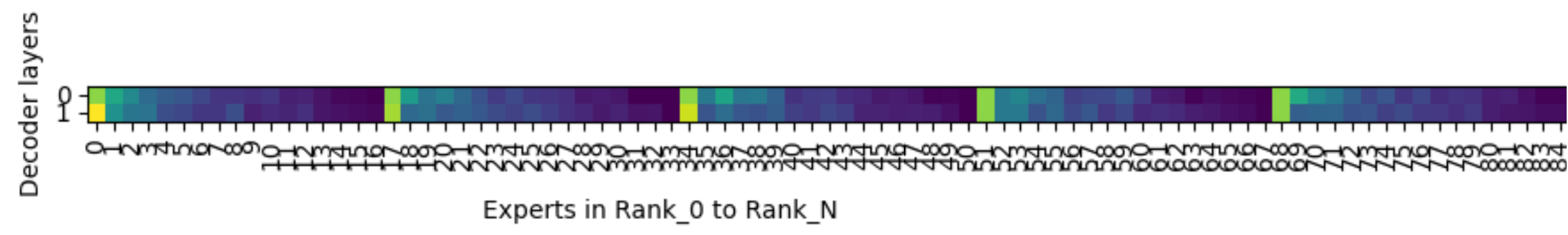 2. 在动态负载均衡场景下,每组数据会额外新增一张热力图,展示各个专家(Expert)在不同层(Decoder Layer)上的被访问频率,也就是负载情况。