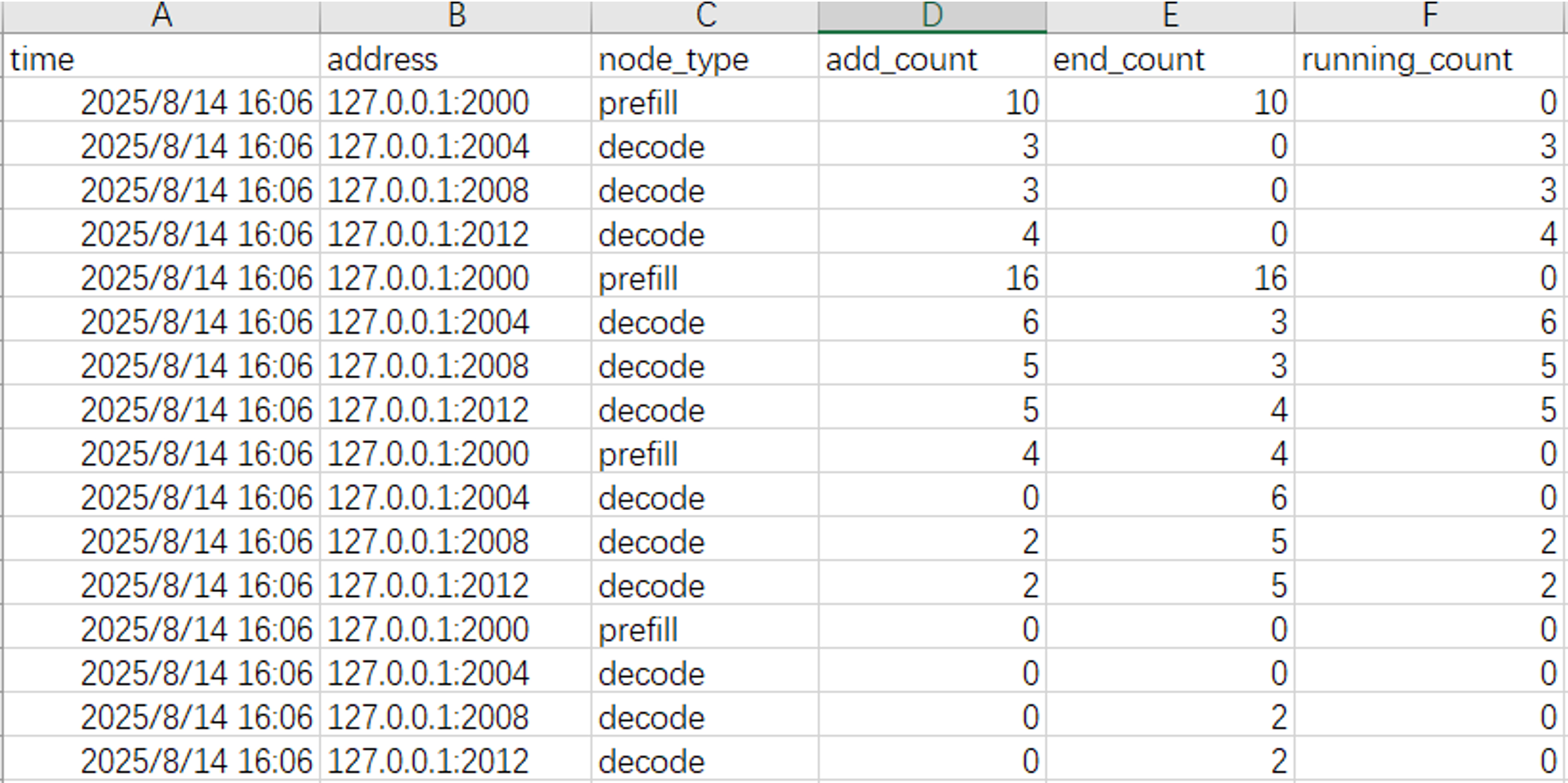 • P节点/D节点上新增的请求数量;