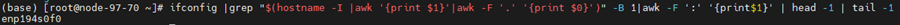 eth_name=`ifconfig |grep "$(hostname -I |awk '{print $1}'|awk -F '.' '{print $0}')" -B 1|awk -F ':' '{print$1}' | head -1 | tail -1`
