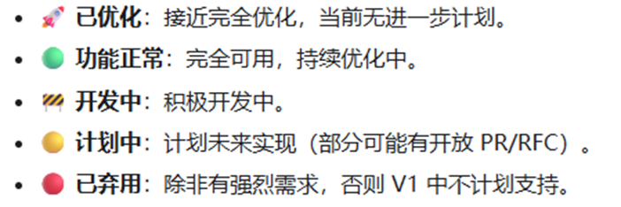 V1 的支持度如下,根据实际需求决定是否开启: