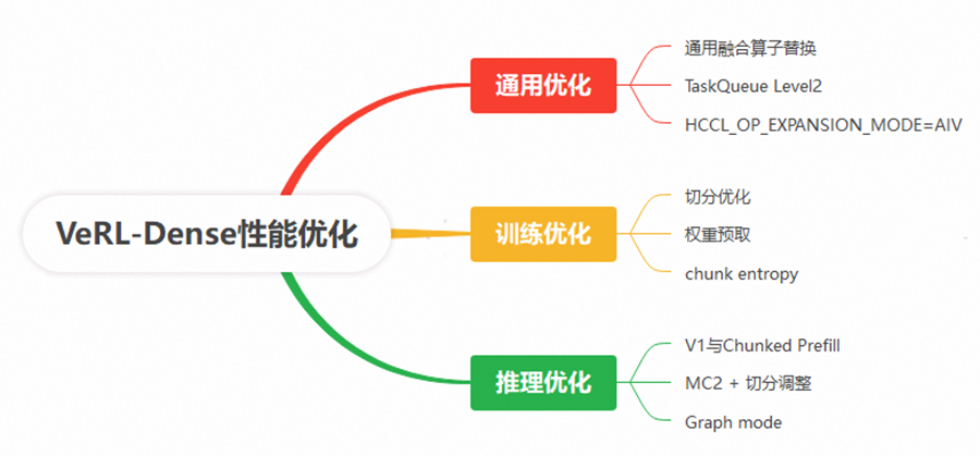 当前,SFT(有监督微调)与强化学习(RL)已逐渐成为大模型后训练的主流范式。其中,verl作为业界开源的大模型强化学习框架,持续受到热捧,截至发稿已在GitHub上获得15K星标和2.4K的Fork数。本文基于verl框架,针对Qwen2.5-32B稠密模型在昇腾A2硬件平台上开展DAPO强化学习后训练,并在平均回复长度为4K tokens的场景下,对推理和训练过程中的模型切分、任务下发、算子融合等关键环节进行了系统性优化。最终,端到端训练性能相较于开箱性能提升1.3倍,实现RL训练的高性能执行。