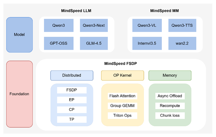 MindSpeed FSDP构建了一套原子化、可组合的高性能加速引擎。开发者可根据模型规模、硬件资源和训练场景,灵活启用所需能力,无需耦合冗余逻辑。