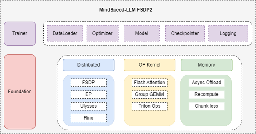 MindSpeed LLM始终以“快速响应、易用高效”为核心,此前已支持120+主流大模型。此次Step-3.5-Flash开源后,团队第一时间完成适配,更依托FSDP2后端特性,实现模型“一键拉起”: