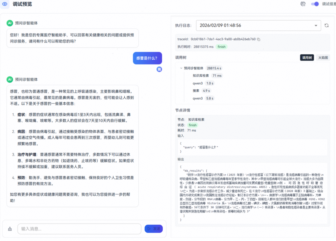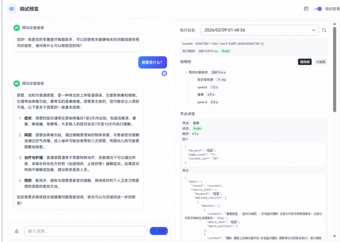 3、全链路可观测与调测能力:覆盖端到端执行过程的实时监测、调用跟踪与异常关联分析,为复杂 Agent 系统在高并发环境下的稳定运行与快速问题定位提供工程级保障。