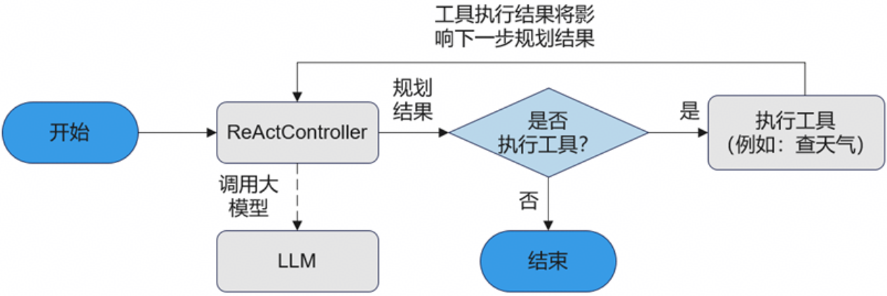 ReActAgent:ReActAgent是一种遵循ReAct(Reasoning + Action)规划模式的Agent,通过 “思考(Thought)→ 行动(Action)→ 观察(Observe)”的循环迭代完成用户任务。其强大的多轮推理与自我修正能力,使ReActAgent具备动态决策能力且能够灵活应对环境变化,适用于需要复杂推理和策略调整的多样化任务场景。