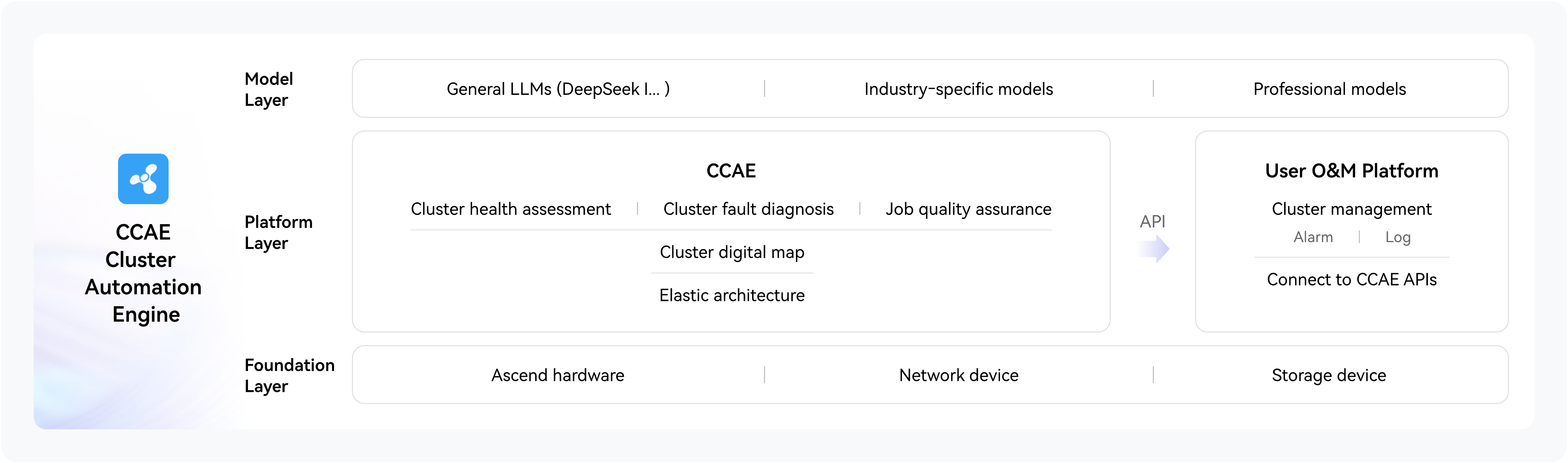 CCAE provides APIs to evaluate the health of the cluster software and hardware environment and eliminate potential risks. The API development tool allows users to create tailored applications efficiently.