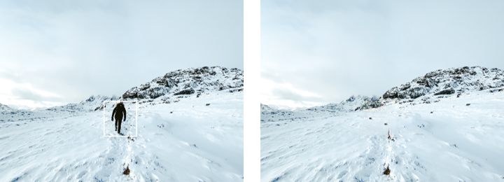 综上所述,在不同场景下可以选择不同的模式以达到快速图像消消消的体验目的。如针对路人消除等可以直接点选消除,省时省力的同时还可以获取到精准的修复效果图。在破损图像修复或图像干扰信息消除时可以进行框选消除,即时获取修复后的图片。