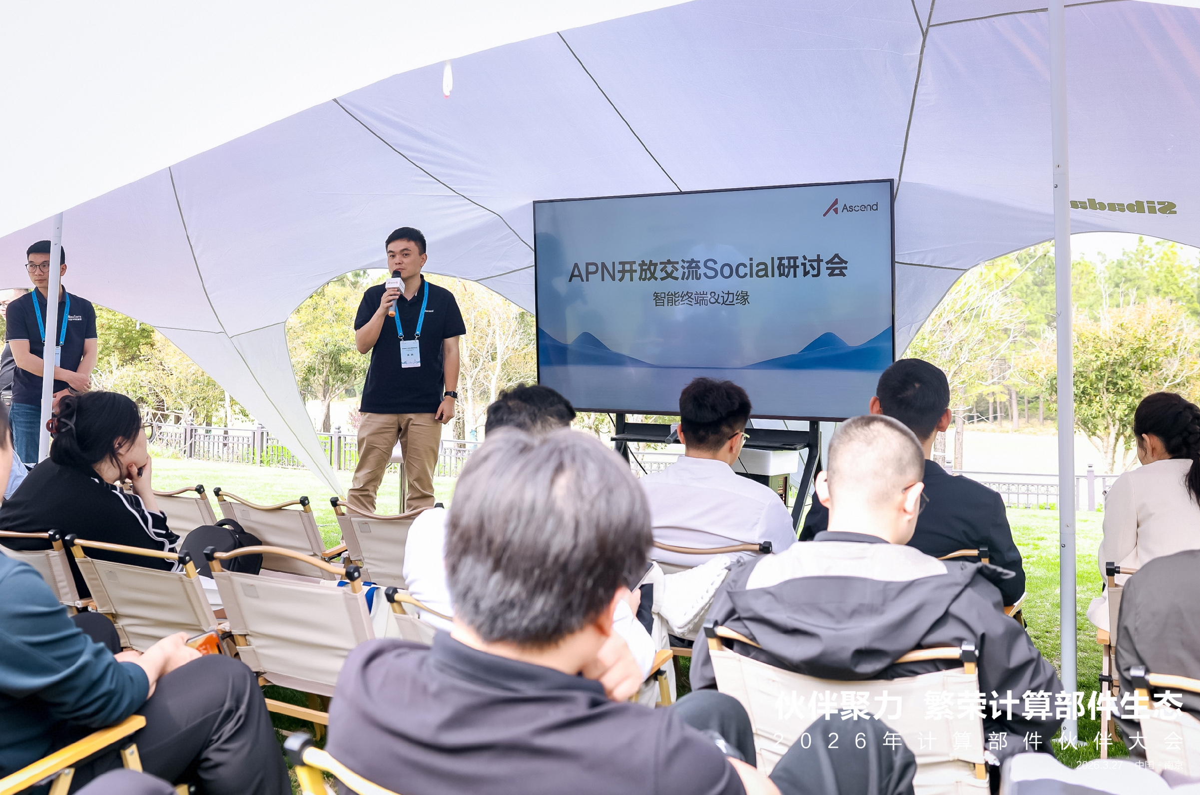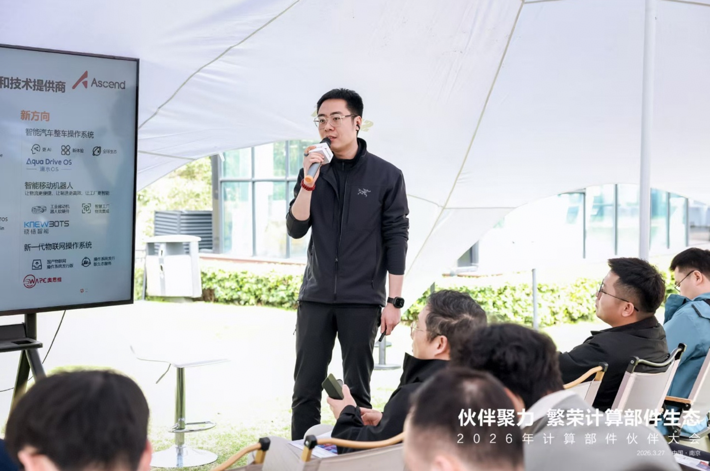 [中国,南京,2026年3月27日] 在南京举办的2026计算部件伙伴大会上,昇腾携手APN伙伴(Ascend Partner Network),围绕“智能终端&边缘”、“龙虾盛宴”和“具身智能”三大前沿方向开展三场主题研讨会。活动由深圳华强半导体集团有限公司、软通动力有限公司、和北京奥思维科技有限公司三家APN伙伴联合出品,现场汇聚近百位产业伙伴、学者、天才少年、及投资者,就场景需求、行业趋势、技术难题以及创业思路展开深度交流。这不仅加深了伙伴间的深度联接,也进一步推动了昇腾APN开放协作、共同繁荣的生态构建。