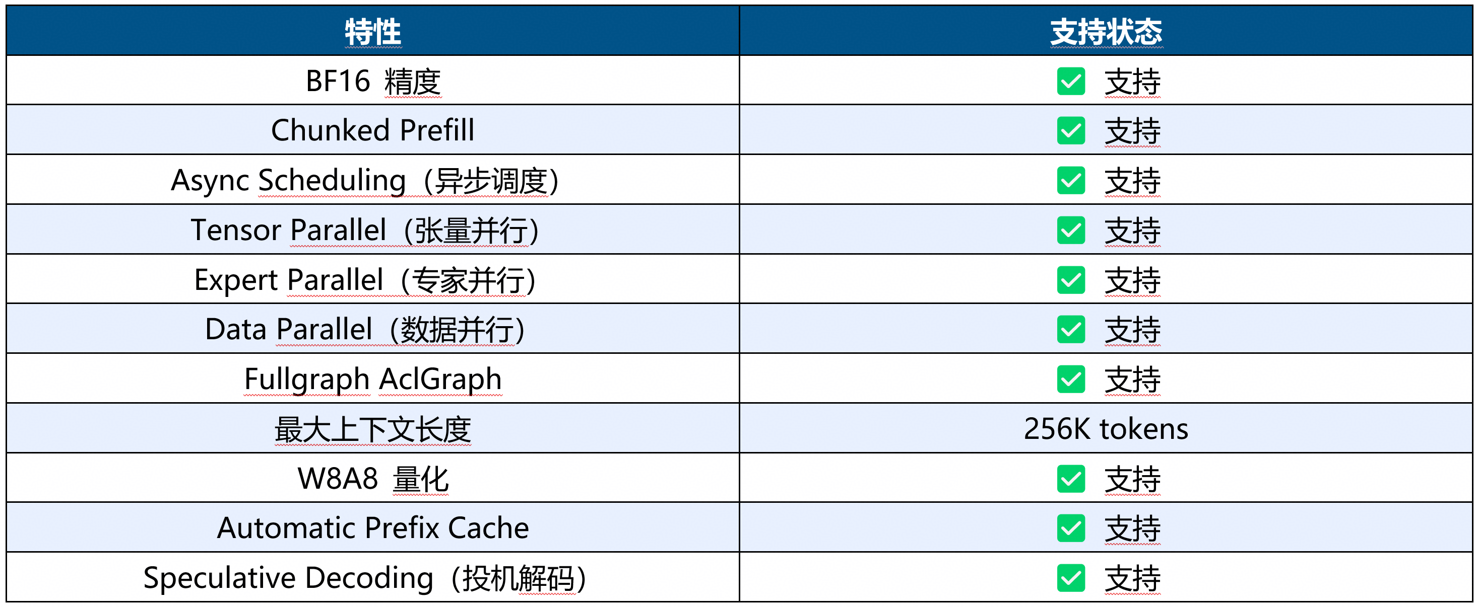 当前Qwen3.6-35B-A3B在昇腾AI基础软硬件平台上的支持特性矩阵如下: